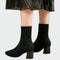 Женски платнени чизми с токчета в бежов цвят, проектирани да комбинират елегантност и комфорт. Еластичното плетено платно прекрасно обвива крака, докато средният квадратен ток предоставя стабилност и стил. Идеални за целодневни комбинации с панталони, поли или рокли.