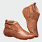 Дамски кожени ботуши в кафяв цвят с минималистичен, но елегантен дизайн. Практична лента отстрани улеснява обуването, докато гъвкавата подметка осигурява комфорт при всяка стъпка. Комбинацията от простота и стил ги прави идеални за ежедневни комбинации, предоставяйки в същото време безвременна естетика.