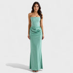 Роклята 'Радмила' представлява временно елегантен стил в най-красивия си вариант. Тази рокля, която достига до пода, има корсетен стил без презрамки, изработена от материя, която предоставя перфектна основа, докато артистичният набор в областта на бедрата създава завидни форми. Персонализираният силует преминава в деликатно разширяване на рибешкия опашка от лъскав сатен, което прави всяка стъпка специална.