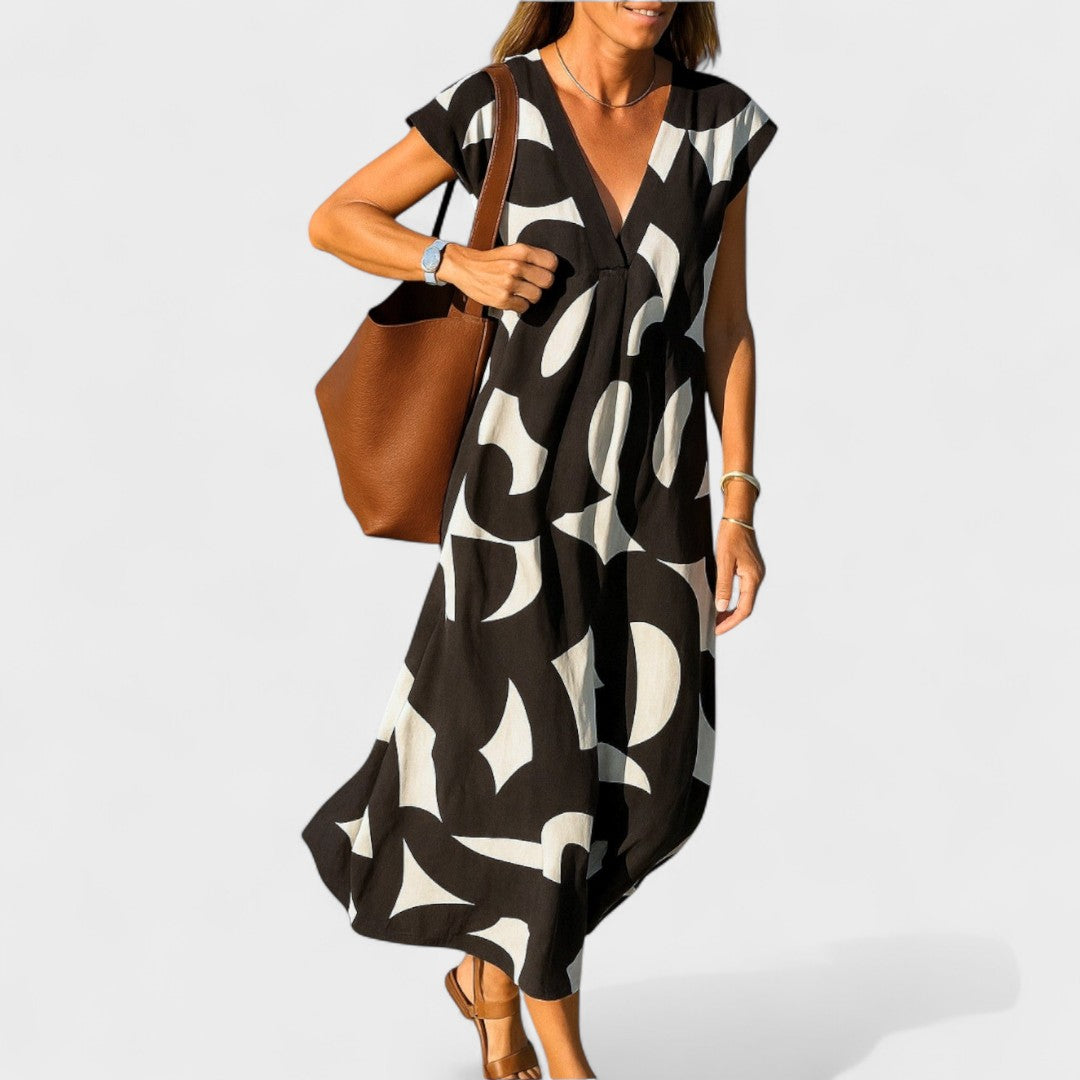 Гордана - Елегантна дълга рокля с V-образно деколте