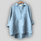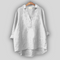 Елегантна ленена блуза в бяло, която излъчва свежест и вечен стил. Има V-изрез с дискретно закопчаване, дълги ръкави, които могат да се навиват, и асиметричен край с по-дълга задна част, осигуряваща комфорт и лекота на движението. Идеалният избор за стилни летни комбинации или елегантен ежедневен вид.