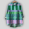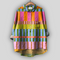 Импозантна ленена тениска с цветен каре модел в нюанси на розово, зелено, синьо и оранжево. Има класическа яка с копчета отпред и малък джоб на гърдите за удобство. Свободната кройка и асиметричният подгъв с по-дълга задна част осигуряват комфорт и специален стил за всяка неформална ситуация.