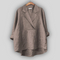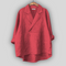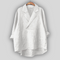 Елегантна линена блузка в мека цветова гама, която излъчва женственост и вечен стил. Има V-образно деколте с прегъване и елегантна яка, докато нейният свободен силует осигурява комфорт през целия ден. Асиметричният завършек с по-дълга задна част придава модерен вид на всеки аутфит.