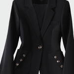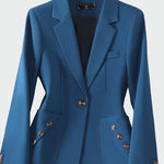 Впечатляващо сако с женствен силует, което се отличава с елегантни детайли. Един бутон отпред придава минималистична елегантност, докато декоративните копчета на джобовете добавят модерен акцент. Идеално за бизнес срещи, но и за вечерни излизания със стил.
