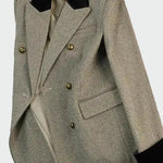 Впечатляващо сако с двустранно закопчаване, което носи вечна елегантност във всяко появяване. Има елегантна яка с контрастна текстура и копчета отпред, които допълват софистицирания вид. Идеално за casual chic комбинации, но и за бизнес поводи.