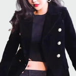 Елегантно сако с вечен крой и двоен бутон, което подчертава силуета. Неговата структура придава професионален и изискан характер, а може да се носи лесно в ежедневни или вечерни поводи. Минималистичният дизайн го прави основен елемент за всяка гардероб.