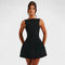 Елегантна безръкава рокля с изискано лодковидно деколте и структурирана горна част нежно подчертава раменете и талията. A-образният силует на полата създава хармонична силуетна линия и осигурява приятна подвижност при ходене и танцуване. Удобната, леко еластична материя следва линията на тялото и запазва безупречен вид от церемонията до вечерното излизане. Идеална за сватби, приеми и всички специални поводи.