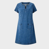 Тази рокля излъчва небрежност и практичен стил, а благодарение на удобния крой и детайли като джобове, става перфектен избор за ежедневни комбинации. Нейният минималистичен дизайн позволява лесно съчетаване с различни модни аксесоари – от неформални обувки до елегантни сандали. Идеална част за жени, които ценят практичността, но не искат да се откажат от модерен вид.