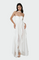 Елегантна максимална рокля с плавно движение и женствена силуета, която нежно обгръща тялото. Изразителен деколте и тънки презрамки подчертават врата и раменете, докато талията придава елегантна форма. Идеална за сватби, кръщенета и всякакви специални поводи.
