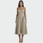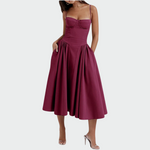 Впечатляваща и извечна рокля, която обгръща силуета и предлага неустоима елегантност. Регулируем корсет с тънки презрамки подчертава женствеността, докато ефирната пола предлага комфорт и движение. Идеална за вечерни излизания, елегантни покани и специални моменти.