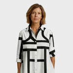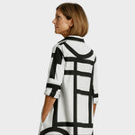 Подчертайте своя стил с тази впечатляваща рокля с геометричен модел. Комбинацията от класическия риза и съвременен дизайн я прави перфектен избор за жени, които искат да съчетаят елегантност и комфорт. Летящият крой позволява свобода на движенията, докато впечатляващият модел добавя нотка на артистичен и урбан чар.