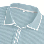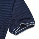 Повърхността има редовен вертикален райетен модел, от раменете до подгъва. Този детайл подчертава фигурата, без да утежнява силуета. Той също така помага за запазване на формата на полото през целия ден.