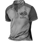 Това поло с къс ръкав, вдъхновено от винтидж мото света, съчетава класическия чар с модерни детайли и удобна кройка.