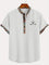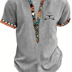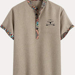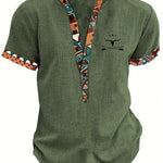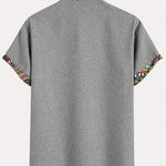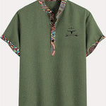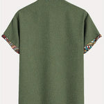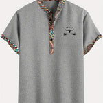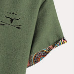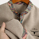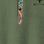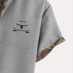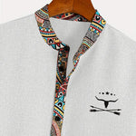 Манжетите и вътрешността на бутоните са украсени с геометрични мотиви, вдъхновени от племенното изкуство. Тези оригинални акценти повишават естетиката на ризата и добавят уникално измерение на вашия вид. Идеална за показване на изразителна личност в неформален стил.