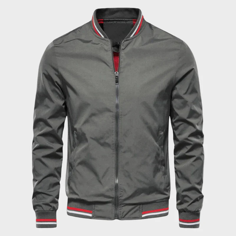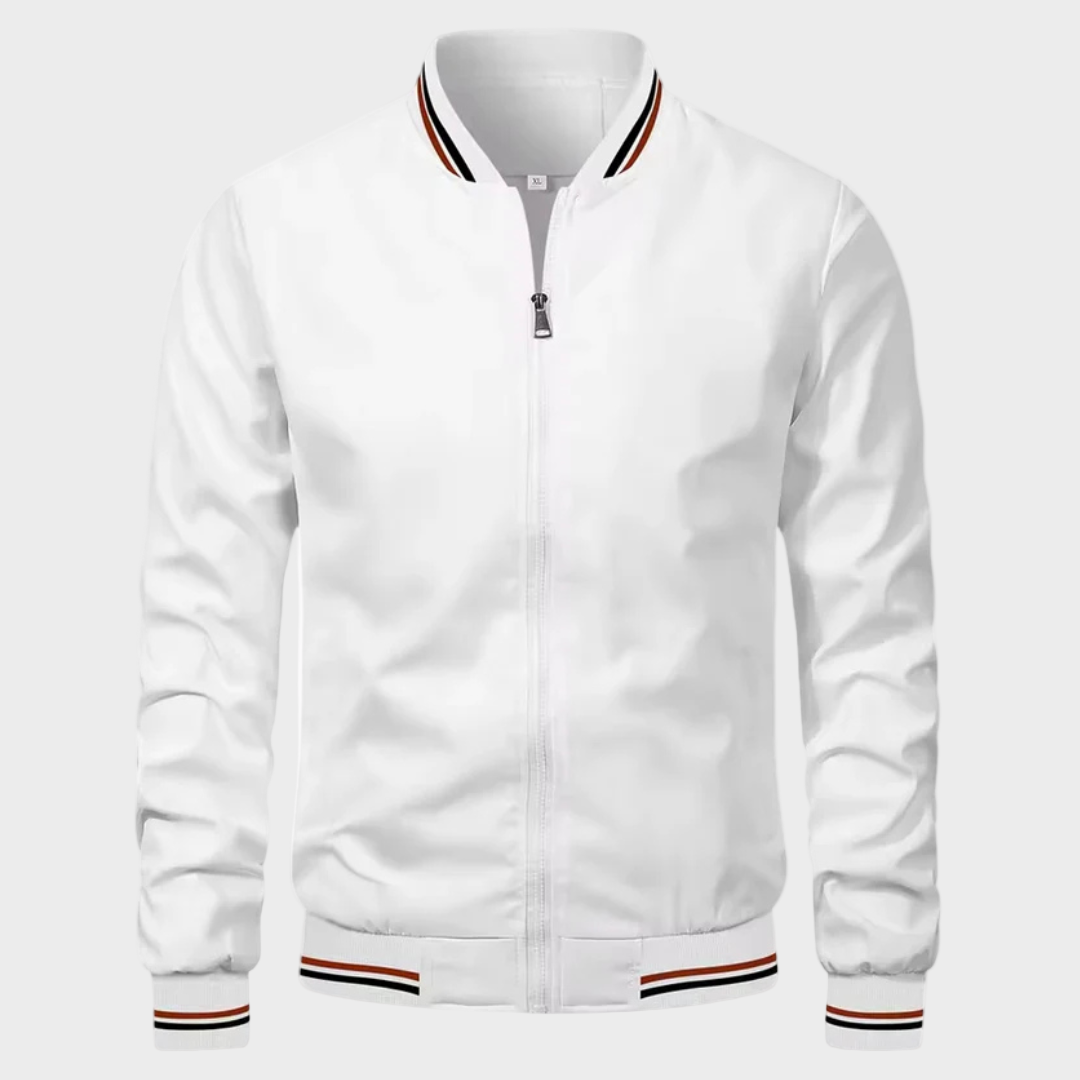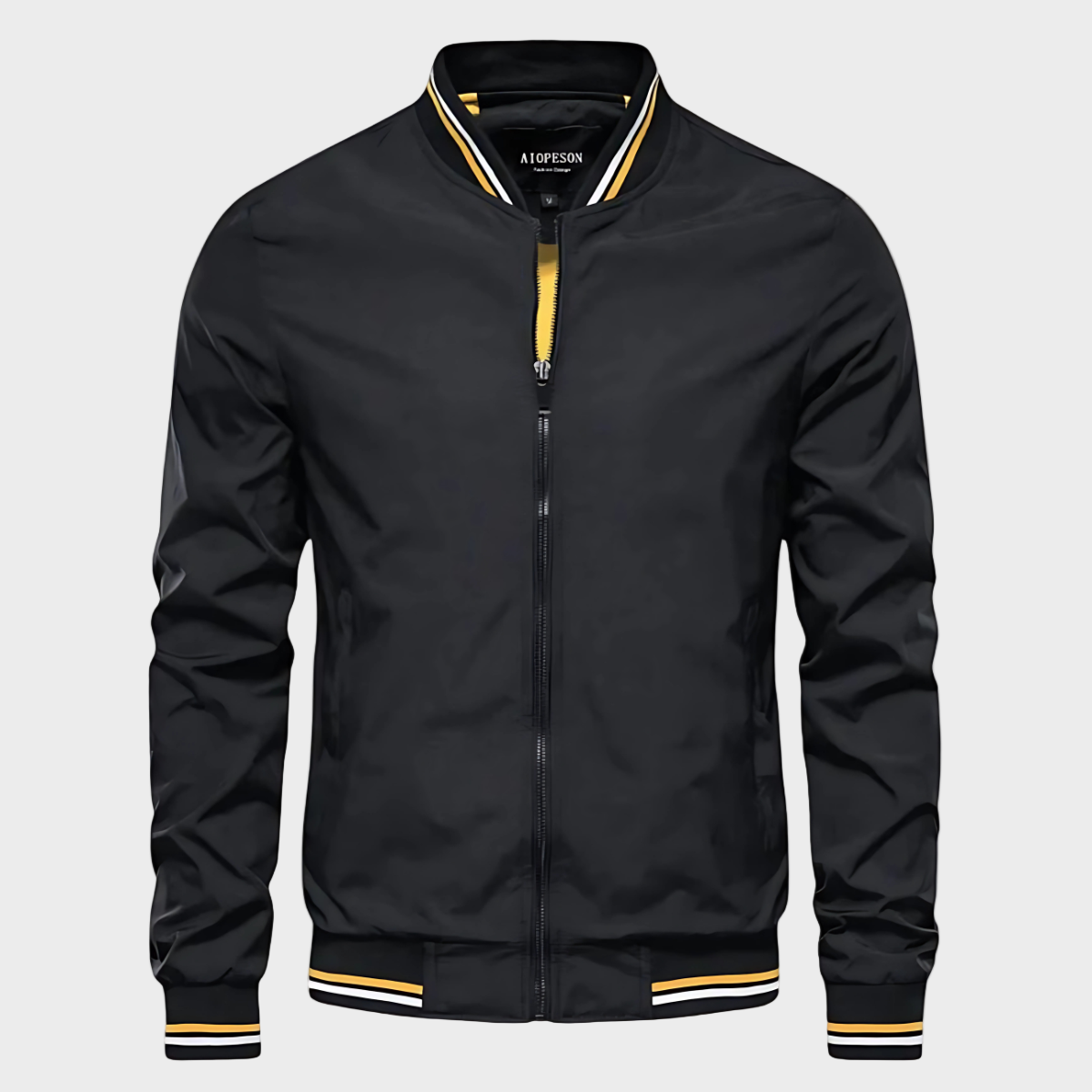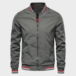 Това мъжко ветроустойчиво яке тип бомбър съчетава минималистичен дизайн и функционалност за динамичното ежедневие. Гладката външна материя предпазва от вятър и лека влага, а дишащата подплата поддържа комфорт през целия ден. Ластичните маншети и коланът по подгъва запазват топлината и оформят чист силует. Централният цип позволява бързо регулиране, а практичните джобове с цип пазят сигурно телефона, ключовете и аксесоарите. Идеално за градски стил, пътувания и между сезоните.