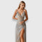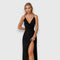 Тази впечатляваща рокля предлага прозрачност и елегантен вид. С тънки презрамки, набрана част на бюста и забележителен разкрой, тя е идеален избор за официални поводи и специални изяви, когато искаш да се откроиш.