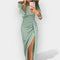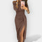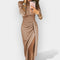 С рафиниран крой и леко падане, тази рокля излъчва вечна елегантност. Идеална за формални поводи или елегантни вечери, комбинира комфорт и стил без усилие.