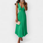 Тази рокля излъчва модерна елегантност с блестящия си материал и плавното движение. Идеална за елегантни вечери и специални поводи, подчертава силуета с дискретен блясък.