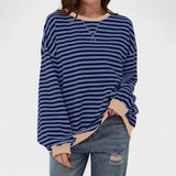 Ксения - Пуловер с дълги ръкави и кръгло деколте на райета