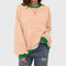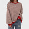 Този удобен и модерен пуловер с дълги ръкави и кръгло деколте е идеален за ежедневни комбинации. Класическият райетен десен никога не излиза от мода, а свободният крой осигурява максимален комфорт и стил. Лесно се комбинира с дънки, поли или ежедневни панталони, което го прави незаменим елемент в твоя гардероб.