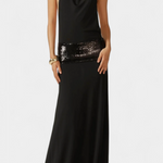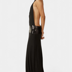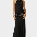 Със своите субтилни блясък и очарователна силуета, роклята Ана е създадена да се откроява на всяко елегантно събитие. Нейният драпирани халтер деколте и напълно открит гръб предлагат перфектен баланс междуSophistication и чувственост, докато лентата от пайети добавя щрих на изискан лукс.