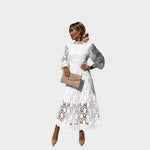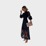 Даница - Чипкана рокля с обемни ръкави и висок яка