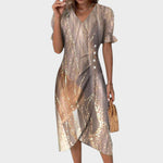 Тези женски лятни рокли са перфектна комбинация от ефирност и практичност. Лек материал и женствен силует осигуряват комфорт през горещите дни, докато разнообразните шарки и цветове позволяват на всяка жена да намери идеалния модел за своя стил. Благодарение на миди дължината и V-образното деколте, роклята е подходяща както за плажа, така и за градска разходка или вечерно излизане.