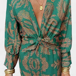 - Чвор в талията, който дефинира фигурата с стил и деликатност