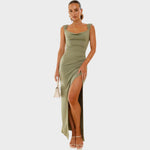 Тази дълга рокля предлага перфектна комбинация от изтънченост и чувственост. Благодарение на женствения си крой, прилепнала силует и атрактивен разрез, подчертава фигурата и осигурява да бъдете в центъра на вниманието на всяка специална повода. Идеална е за вечерни излизания, тържества или романтични моменти.