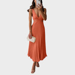 Катарина - Елегантна Рокля с V-образно Деколте и Плисирана Поличка