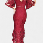 Романтична оферта, която излъчва вечна елегантност. Ксения комбинира деликатна дантела на корсета с деколте във формата на сърце, което деликатно подчертава женствеността. Ръкавите във форма на фрула придават sophistication, докато пола русалка с висок и нисък разрез и двойни волани се движи с грация при всяко движение.