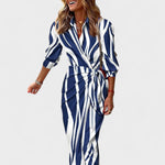 Риза-крой с елегантна яка и копчета, лека и податлива тъкан, която красиво пада, и флуидна силуета с изискан разрез – тази шарена дълга рокля е създадена за моментален ефект. Дискретно подчертава талията и осигурява свобода на движението, така че също толкова добре функционира в дневни комбинации и вечерни поводи.