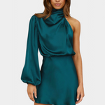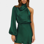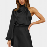 - Деколте на едно рамо, което носи модерен и изтънчен нюанс