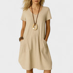 Дизайнът на роклята София е създаден за истински жени във всички етапи от живота, комбинирайки ласкав свободен силует с мек материал, който следва всяко движение. Идеална е за ежедневно носене или за наслаждаване на следобедното слънце със стил и свежест.