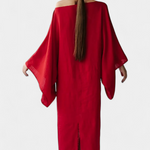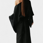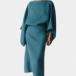 Филипа въплъщаваRelaxed elegance, вдъхновена от Япония и съвременната същност. Нейният кимоно силует, изработен от лека смес от лен и памук, обгръща тялото с органична свежест и структура. Широките ръкави, кръстосаният деколте и съответстващият пояс определят флуидната, универсална и естествено изискана дреха.