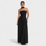 Тясната горна част подчертава талията и деколтето, създавайки елегантна и мощна линия. -