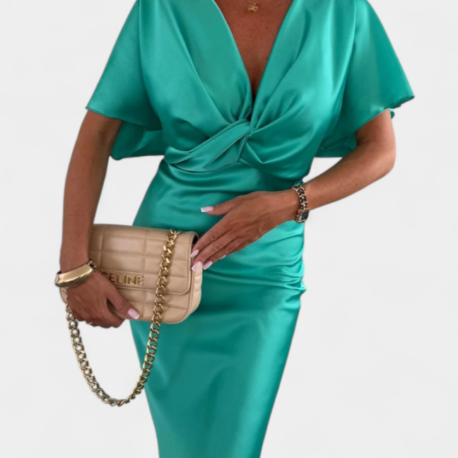 Леа Елегантна Рокля с Увивен Талия и V-Изрез
