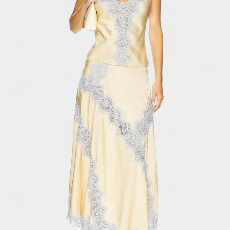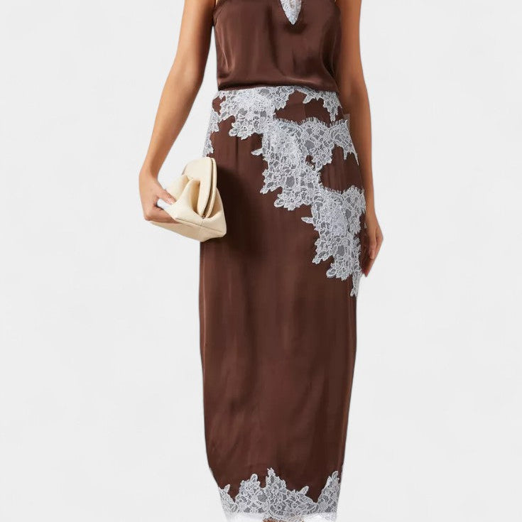 Драгийца Комплект Топ и Пола с Контрастни Чипкови Пана