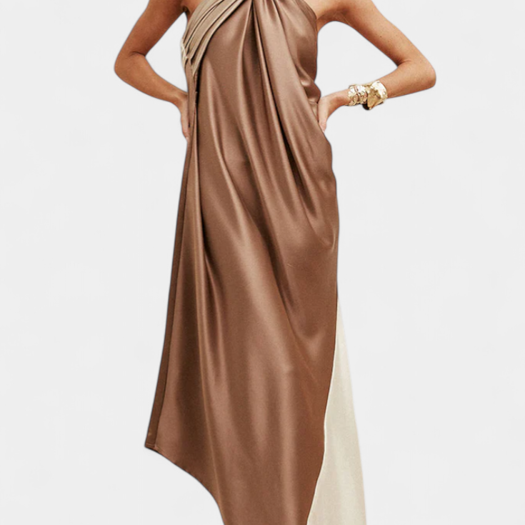 Андреа Асиметрична Рокля с Драпиране на Едно Рамо