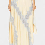 Софистициран сет, който комбинира копринен блясък на сатена с романтични детайли за шикозен вид без усилие. Данича се отличава с топ без ръкави с тънки презрамки и ласкав деколте, балансирана с флуидна миди поличка, която носи естествено движение. Контрастната дантела в деликатни тонове добавя ретро френски акцент, превръщайки този дизайн в изтънчено и универсално предложение.