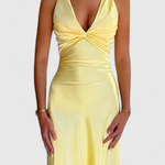Рафинирана, модерна и с визуален ефект, роклята Леа повишава вашия стил с дизайн, който обгръща фигурата и подчертава вашето присъствие. Нейният дълбок V-изрез, увит талия и меко драперие я правят изискана опция за специални събития и незабравими нощи.