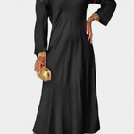 Елегантна, универсална и извечна, роклята Мартинa се отличава с изтънчената си простота. Нейната флуидна силуета, V изрез и дълги ръкави създават облекло, което естествено се адаптира както за празненства, така и за вечери с неформален стил.