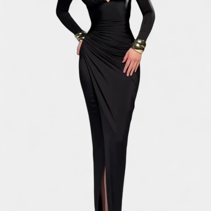 Андреа Елегантна Дълга Рокля с V-Изрез и Страничен Разрез