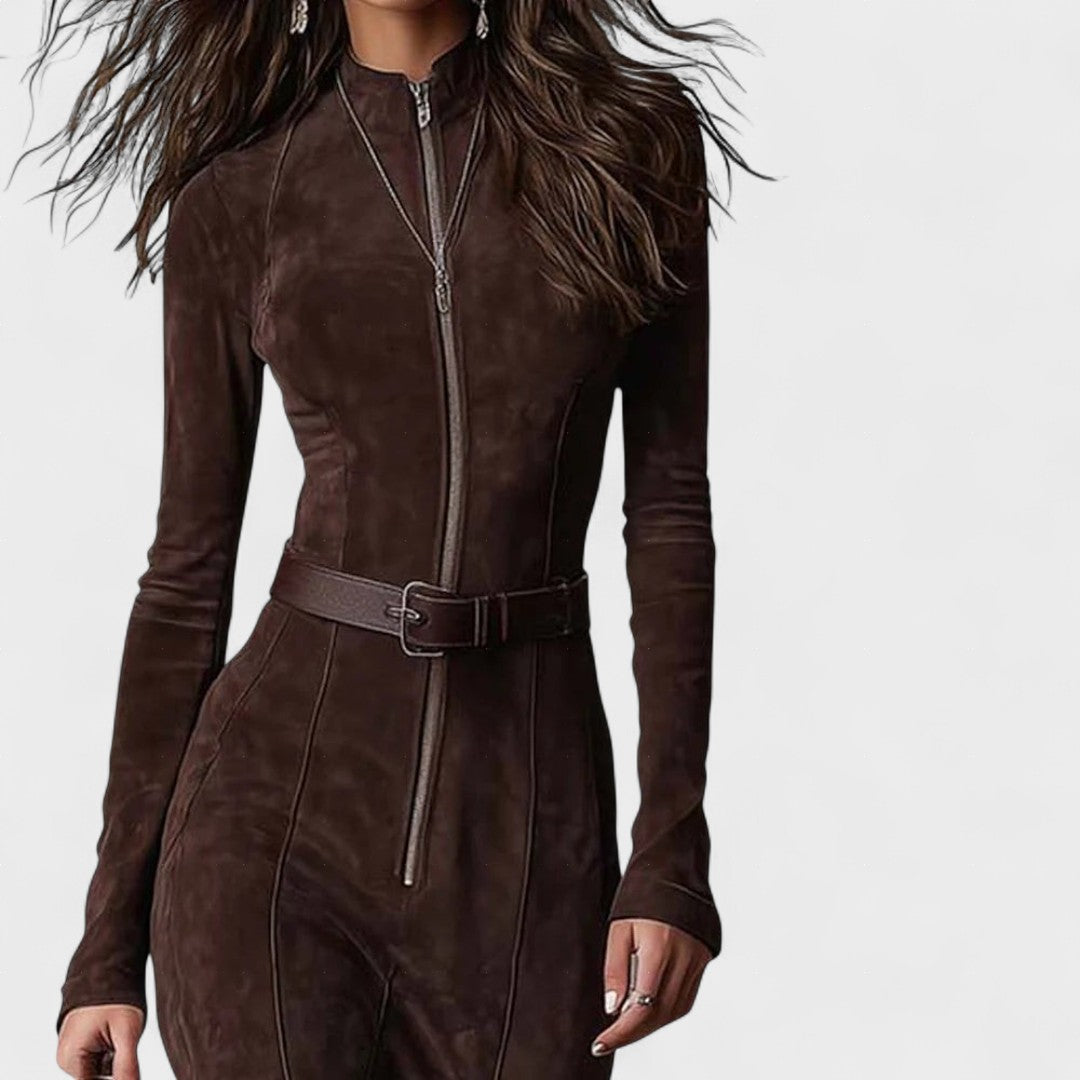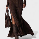 Открийте лукса и изтънчеността на нашата макси рокля с цип и колан, която съчетава винтидж стил с модерна елегантност.