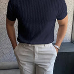 Утвърдете стила си с лекота благодарение на този основен трикотажен пуловер, проектиран да вдъхва увереност.