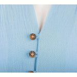 Всяко копче е здраво пришито, за да устои на ежедневна употреба и многократни пране. Те се закопчават лесно и остават добре подредени, придавайки на силуета изискан и симетричен завършек.