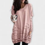 Райли - Пуловер с Принт и Удобство е твоята нова любима дреха за небрежна елегантност. С вълнообразен ръб, прекрасна цветна бродерия и oversized силует, съчетава луксозни детайли с ежедневен комфорт.