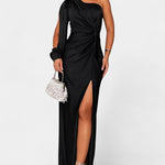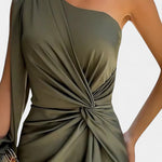 Андреа Асиметрична Рокля с Драпиране на Едно Рамо