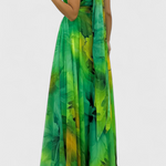 Антония Макси Рокля от Шифон с Цветен Узор и Халтер Яка