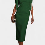 Весна Миди Рокля с Перлени Детайли и Кръгло Деколте